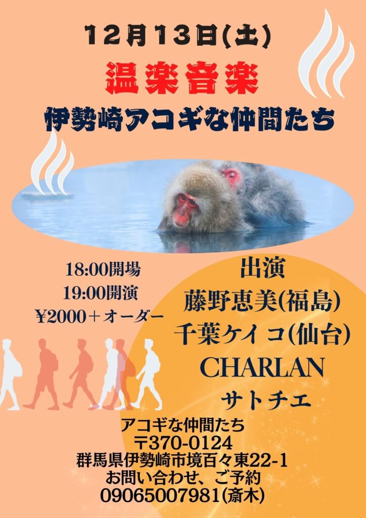 12月13日(土)【温楽音楽】@伊勢崎境 アコギな仲間たち