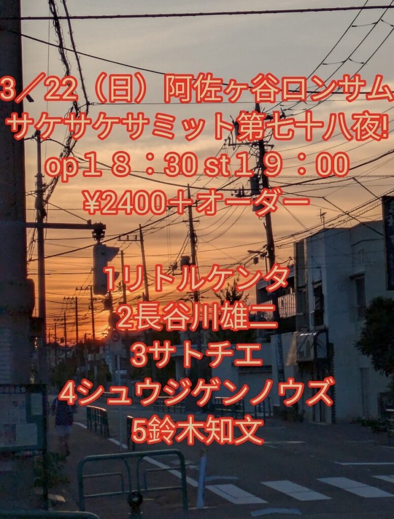 【サトチエライブ情報】3/22(日)阿佐ヶ谷ロンサム サケサケサミット第七十八夜