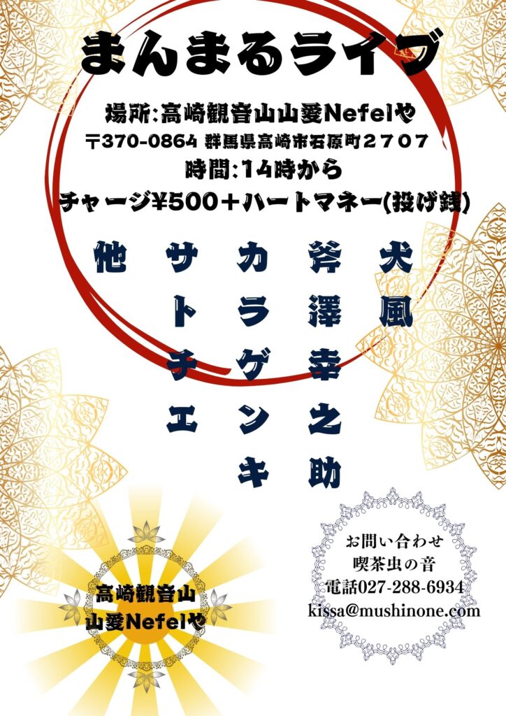 2月1日(日) まんまる⭕️ライブ @高崎観音山参道 山愛Nefelや