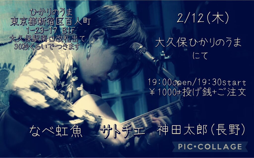 « イベント一覧 このイベントは終了しました。 2月12日(木) @大久保ひかりの馬 なべ虹魚 サトチエ 神田太郎 2月 12日 @ 7:00 PM - 11:00 PM « 2/11(木祝)碑文谷APIA40 『独唱パンクvol.257 26執念奇燃』 2/14(土) Casa Midori 10th Anniversary 【柿落としの昭和少年現る】 » 2月12日(木)@大久保ひかりのうま 19:00/19:30 ¥1,000+投げ銭 ドリンク別 なべ虹魚 サトチエ 神田太郎(長野) + Google カレンダー+ iCal エクスポート 詳細 日付: 2月 12日 時間: 7:00 PM - 11:00 PM この投稿へのコメント コメントはありません。 コメントを残す コメントをキャンセルメールアドレスが公開されることはありません。 ※ が付いている欄は必須項目ですコメント ※ 名前 ※ メール ※ サイト 次回のコメントで使用するためブラウザーに自分の名前、メールアドレス、サイトを保存する。